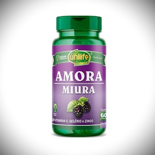 A Amora Miura com Vitaminas Unilife Vitamins é um suplemento VEGANO, desenvolvido a partir de amora miura em pó, vitamina C, zinco, selênio. Livre de glúten.