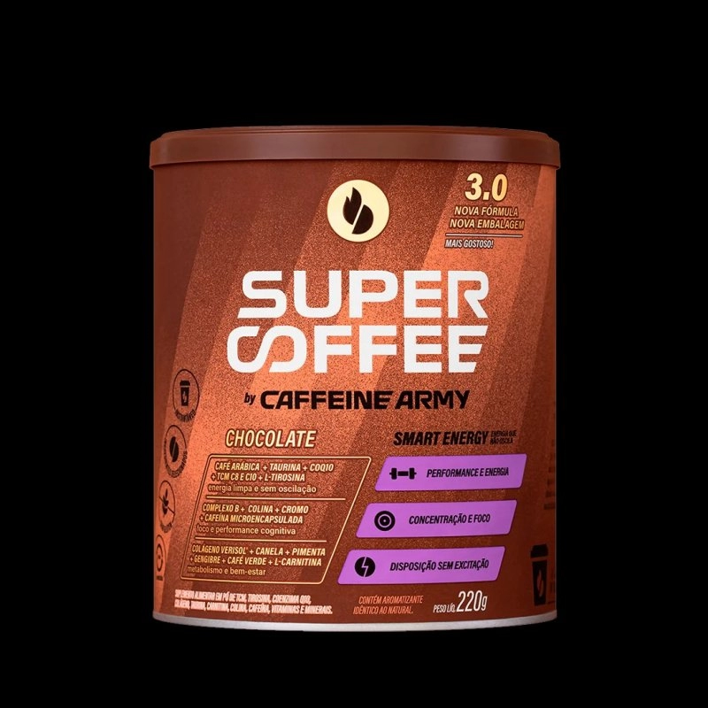 SUPERCOFFE CHOCOLATE: 22 doses da combinação funcional e saborosa de ingredientes naturais e alta tecnologia que proporcionam a dose certa de energia limpa, estável e duradoura.