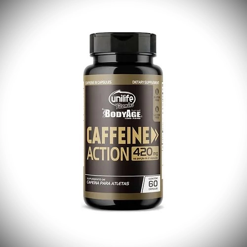 A Caffeine Action Unilife Vitamins é um suplemento BIOKOSHER, desenvolvido a partir de cafeína anidra e óleo de soja. A CAFEÍNA auxilia no aumento do estado de alerta e na melhora da concentração e no desempenho de exercícios físicos de resistência. Livre de glúten.