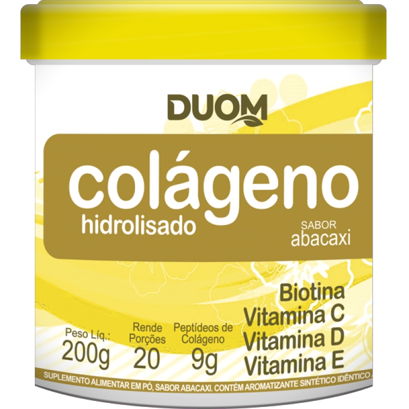 O Colágeno Hidrolisado com vitaminas C, D, E e Biotina da Duom, conta com as propriedades benéficas do colágeno e das vitaminas que possuem papel fundamental para absorção e efeito junto ao organismo. Sabor Abacaxi.